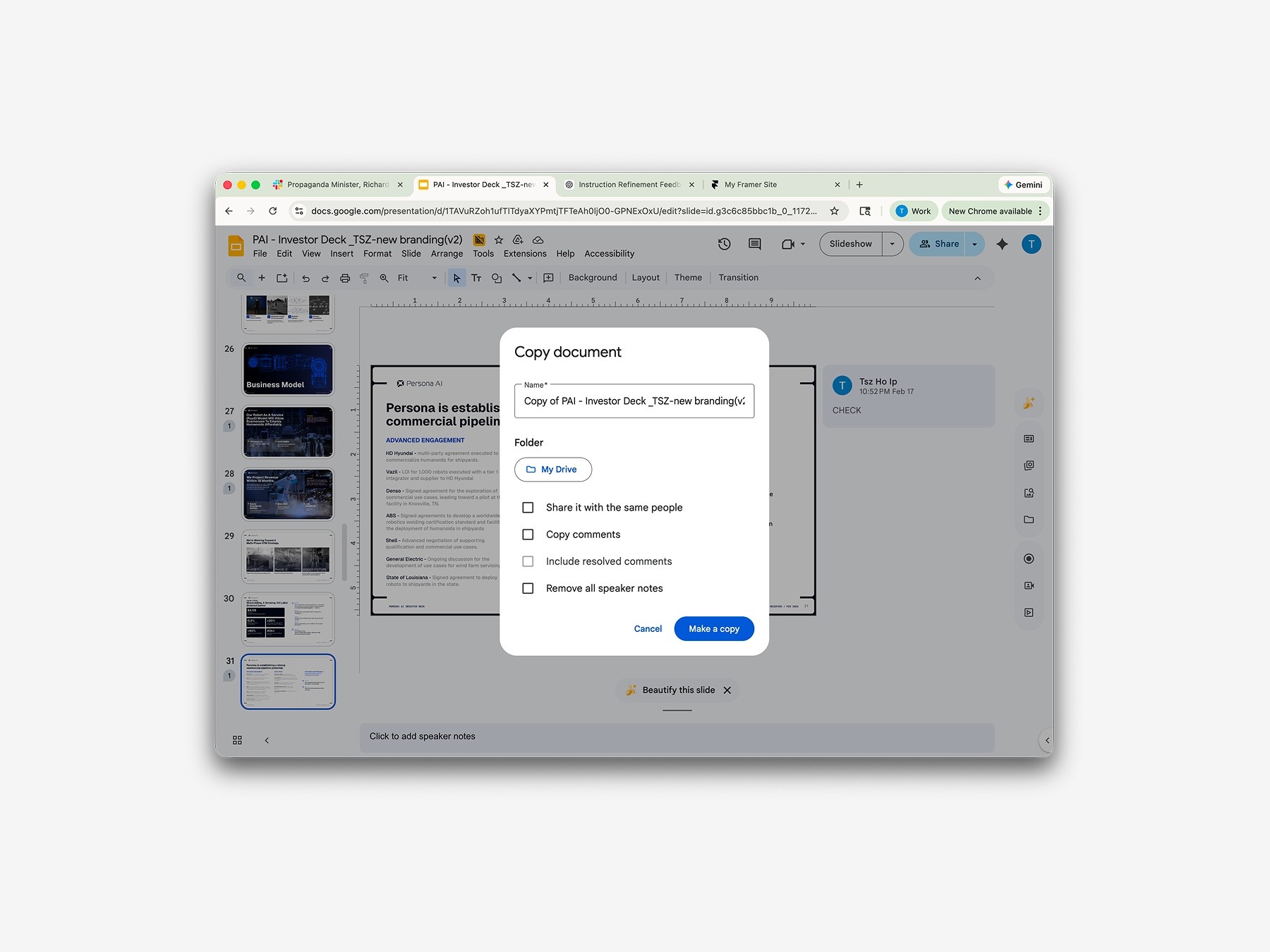 Go to File → Make a copy → Entire presentation.